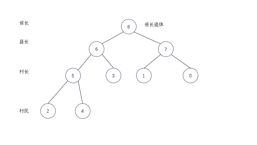 现在县长空了,2还是无法领导8和5两个村长,那就从8和5里选8上去当县长