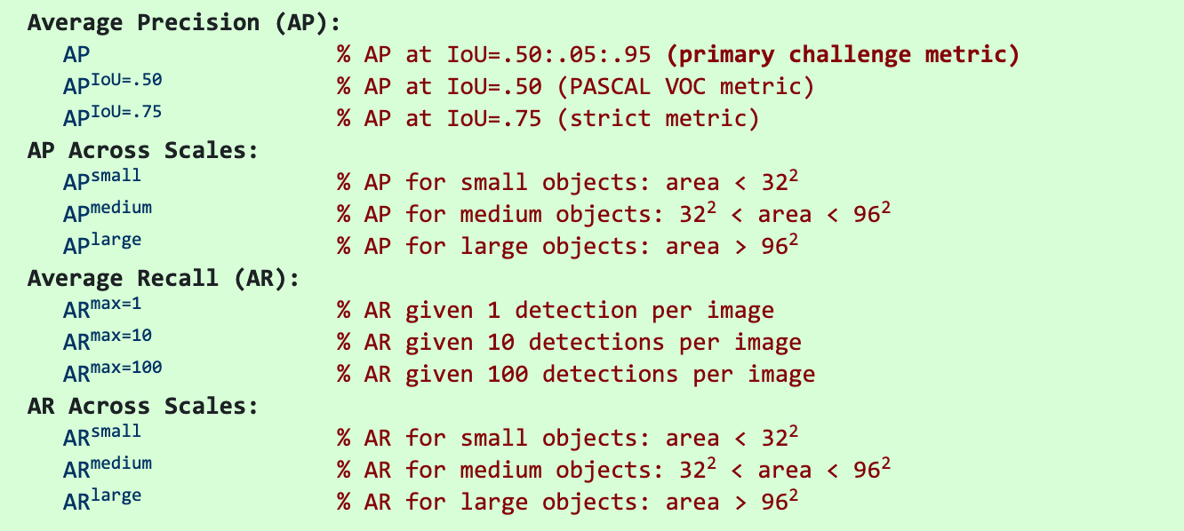 AP: AP at IoU= 0.50: 0.05: 0.95