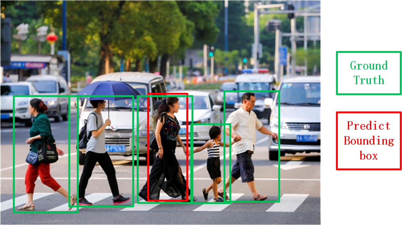 假设当前一张图像样本里总共包括230个行人,现在对图像中的行人进行检测,结果检测出来100个目标框,其中60个框检测到了行人,其余40个框没有检测到行人