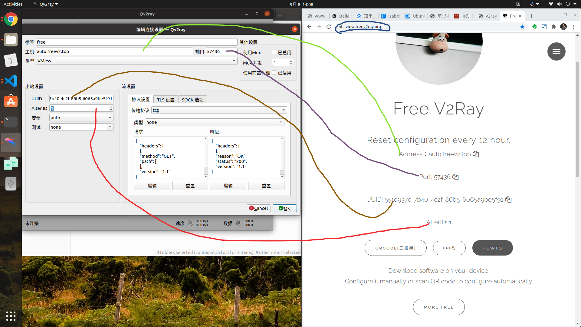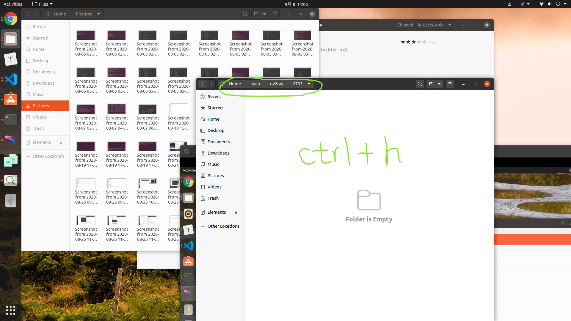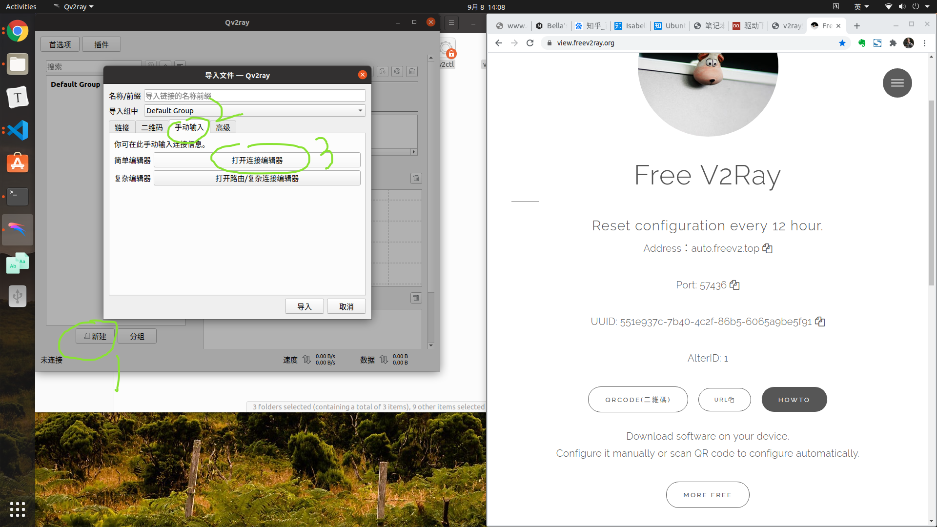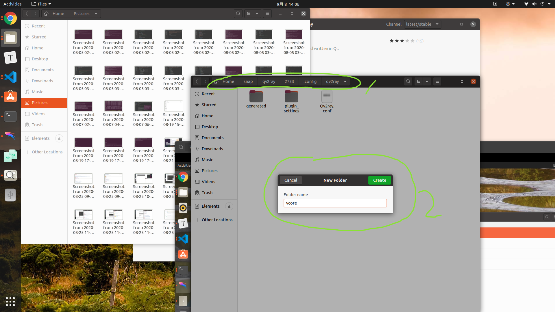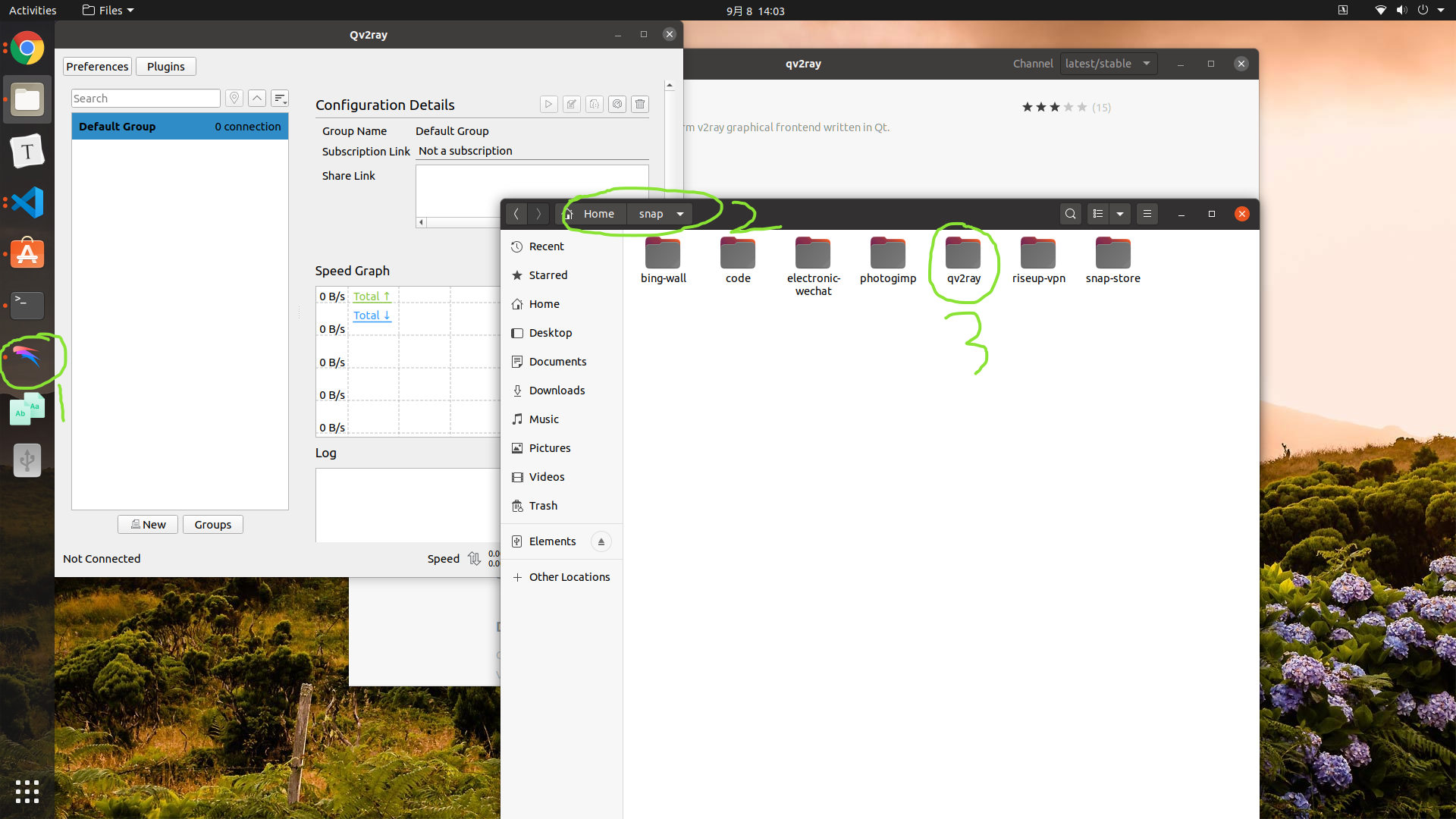 打开Qv2ray, 会在主文件夹下的snap下自动生成一个名为qv2ray的文件夹