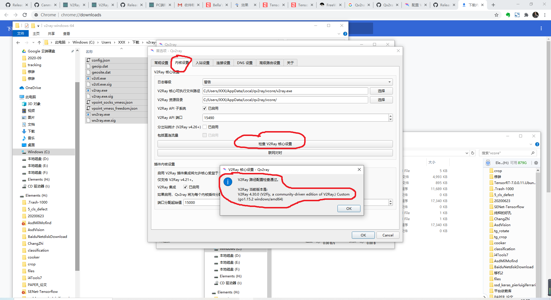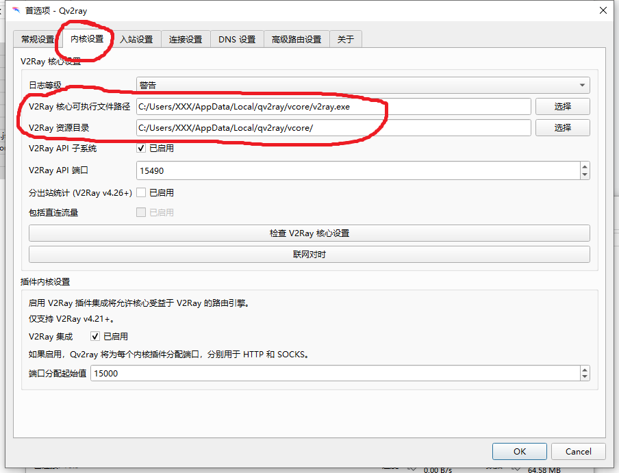 根据你自己的环境选择对应的压缩包下载,成功后先从桌面打开qv2ray, 进入界面后在设置里根据提示的核心文件路径进行配置。