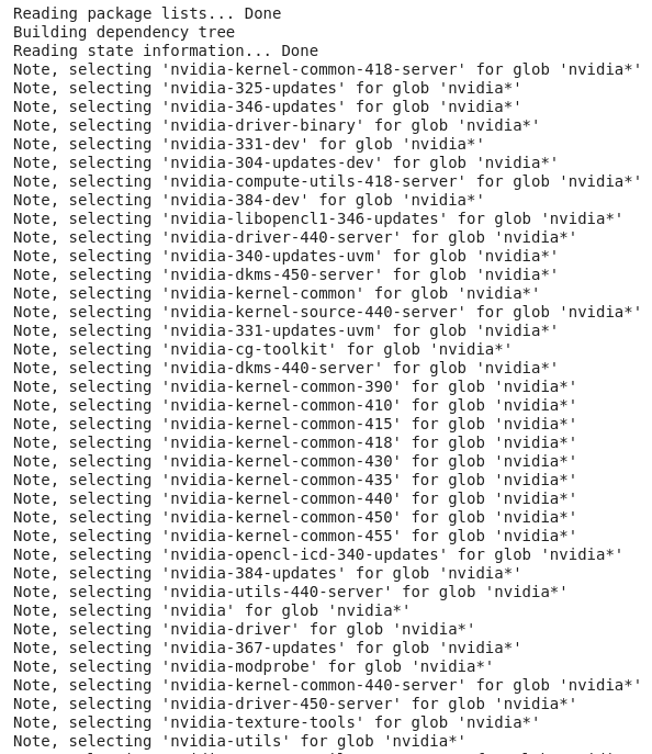 | 1 | !sudo apt-get --purge remove cuda nvidia* libnvidia-* |