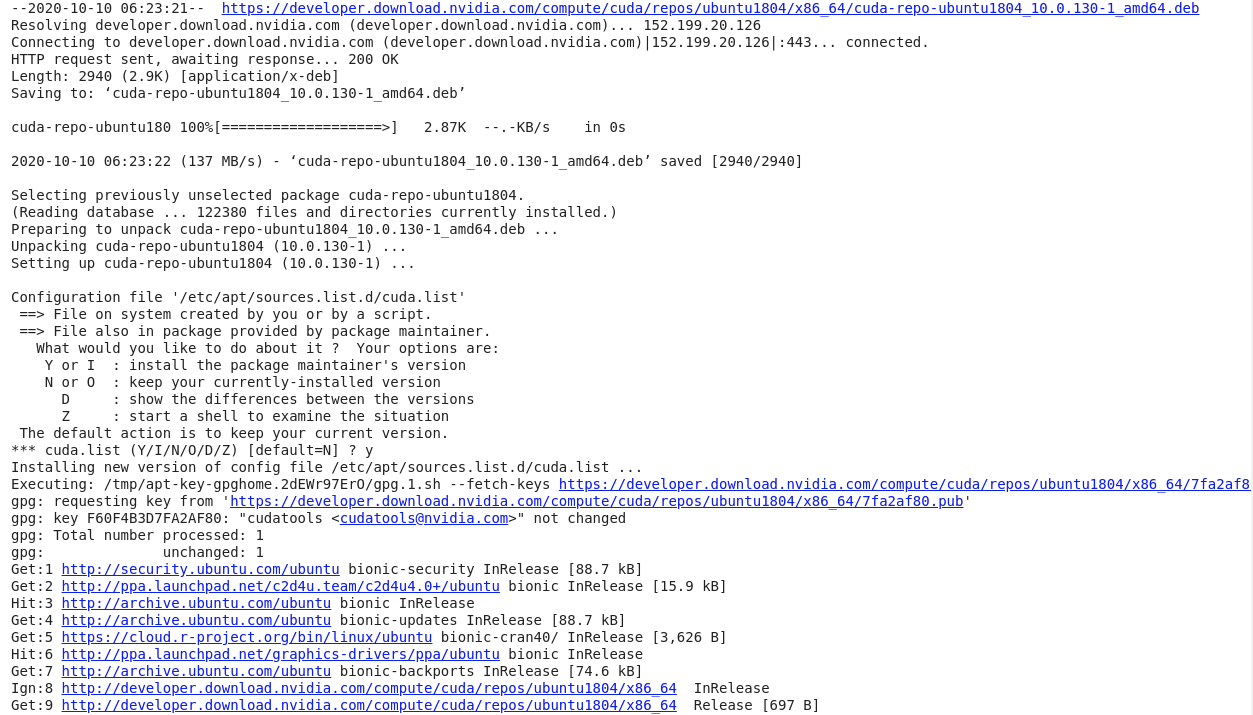 | 1 | !wget https://developer.download.nvidia.com/compute/cuda/repos/ubuntu1804/x86_64/cuda-repo-ubuntu1804_10.0.130-1_amd64.deb |