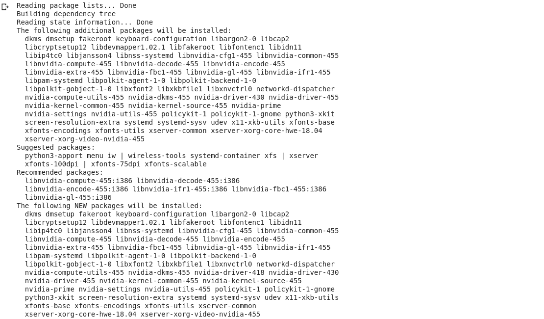 | 1 | !sudo apt-get -y install nvidia-driver-418 |