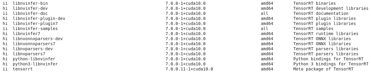 | 1 | !dpkg -l | grep TensorRT |