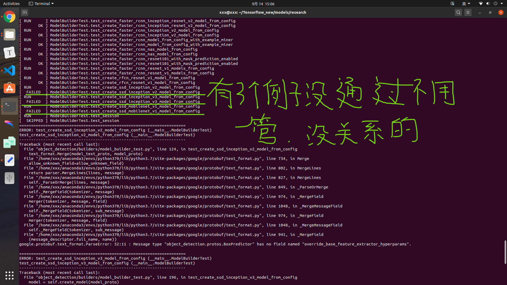 这里说明一点,如果你要运行model_builder_test,可能会出现有些例子运行失败,这里不用care这些失败,无视就好了,不影响接下来的训练。
